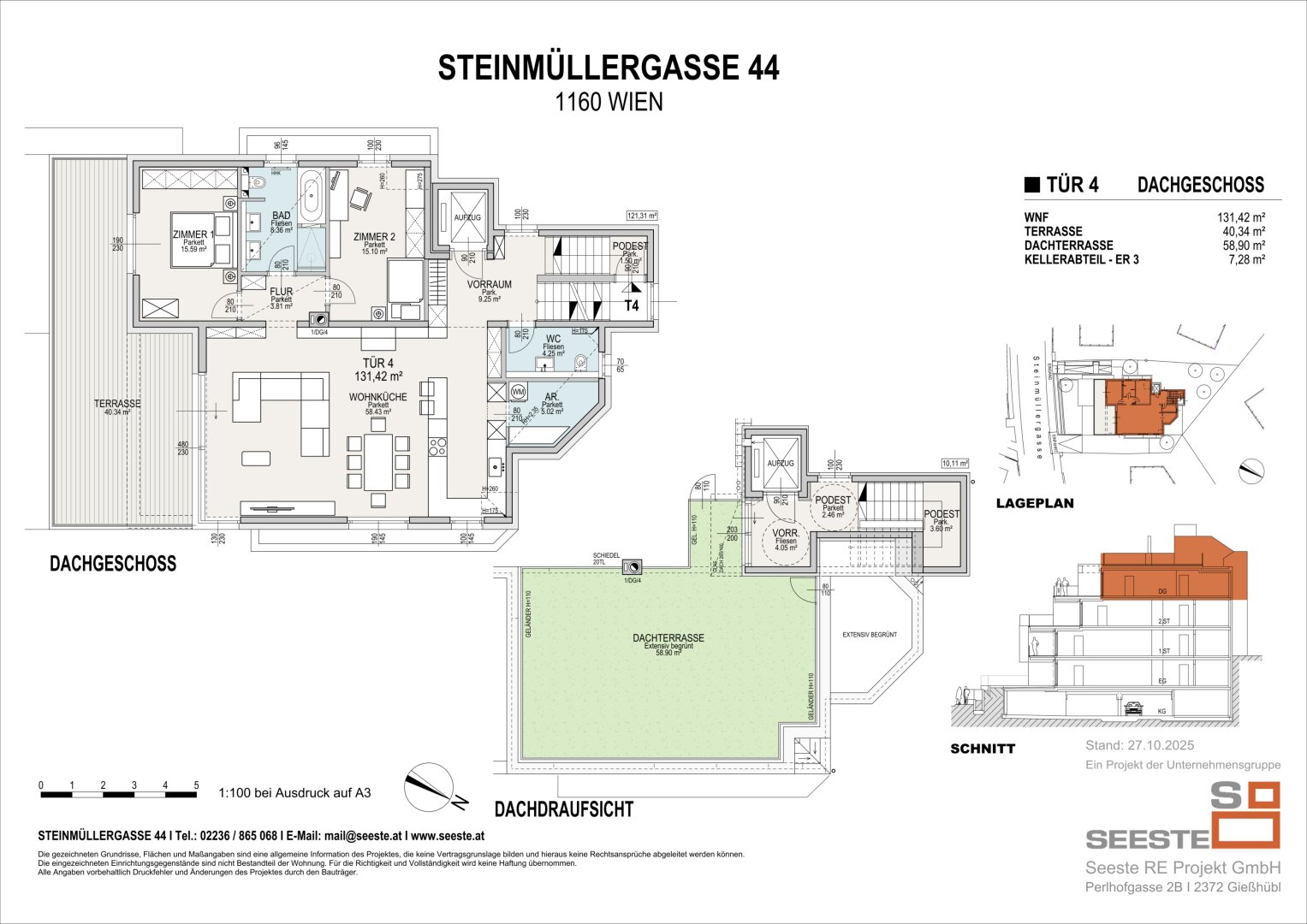 Folder Steinmüllergasse 44 Bau- und Ausstattungsbeschreibung Energieausweis Video: Ausblick vom Grundstück Grundriss Tür 4 Erdgeschoss Mezzanin Lageplan Kellergeschoss Souterrain Tiefgarage RegelschnittExklusive Eigentumswohnung am Fuße des Wilhelminenbergs.