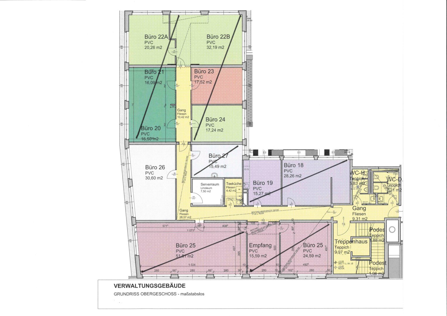 - Getrennte Toiletten im Stiegenhaus